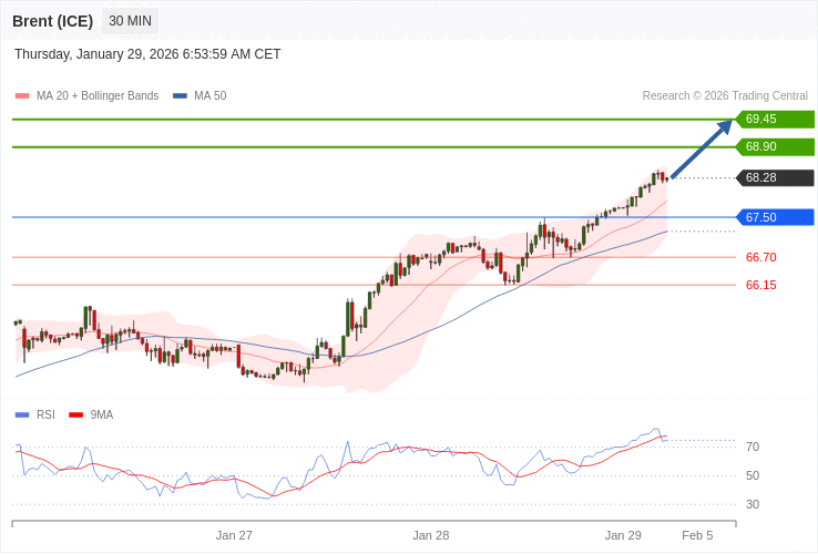 Preferovaný scénář: Dlouhé (long) pozice nad 67,50 s cílem na 68,90 a dále pak až na 69,45.