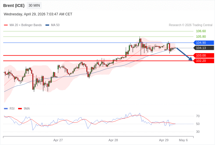 Klíčová slova: Intradenní výhled | Ropa Brent | Indikátor | Pozice | RSI | Rezistence | Ropa | Short | Trading | Brent | Pivot | Trading Central | Supporty a rezistence | Výhled | Krátké (short) pozice | Indikátor RSI | Růst | Supporty |