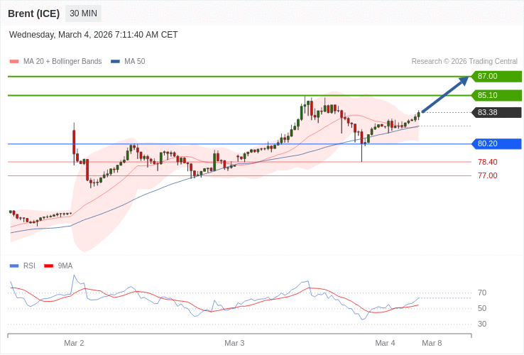 Ropa Brent - Intradenní výhled 4.3.2026