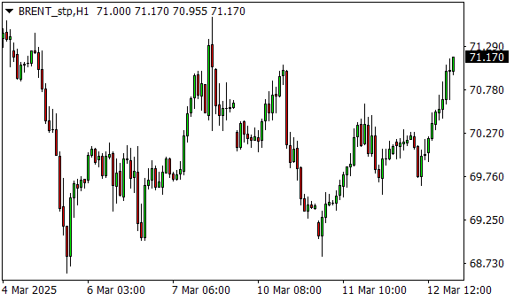 Vývoj ceny ropy Brent (1hodinový graf - H1):