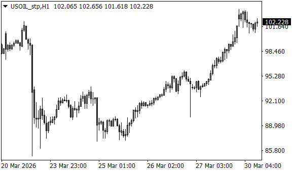 Vývoj ceny ropy WTI (1hodinový graf - H1):