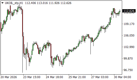 Vývoj ceny ropy Brent (1hodinový graf - H1):