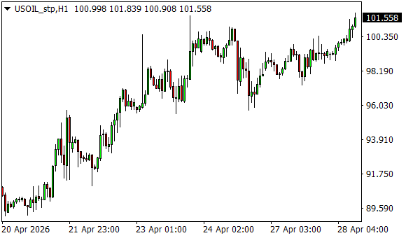 Vývoj ceny ropy WTI (1hodinový graf - H1):