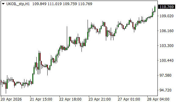 Vývoj ceny ropy Brent (1hodinový graf - H1):
