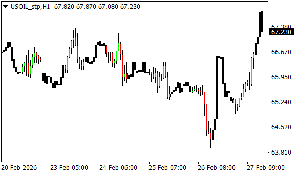 Vývoj ceny ropy WTI (1hodinový graf - H1):