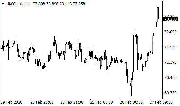 Vývoj ceny ropy Brent (1hodinový graf - H1):