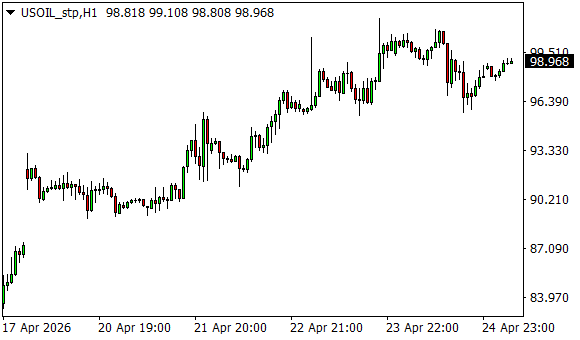 Vývoj ceny ropy WTI (1hodinový graf - H1):