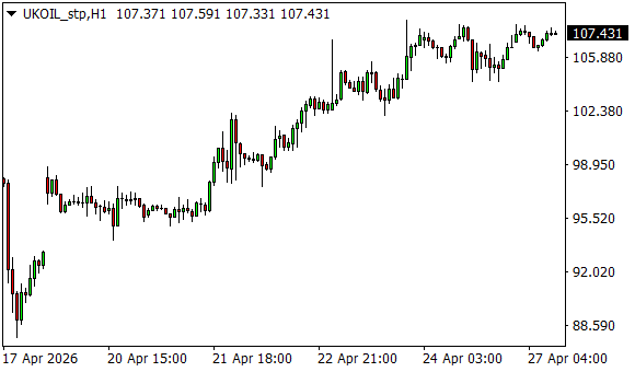 Vývoj ceny ropy Brent (1hodinový graf - H1):