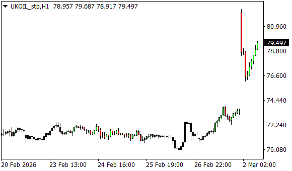 Vývoj ceny ropy Brent (1hodinový graf - H1):