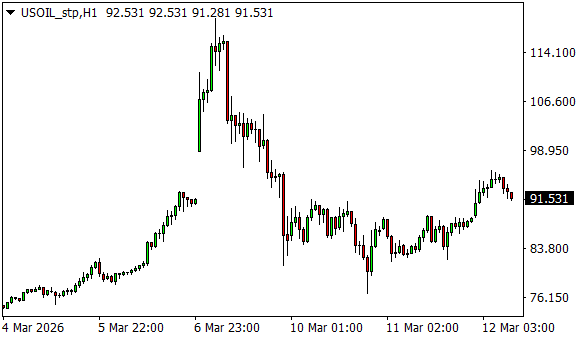 Vývoj ceny ropy WTI (1hodinový graf - H1):