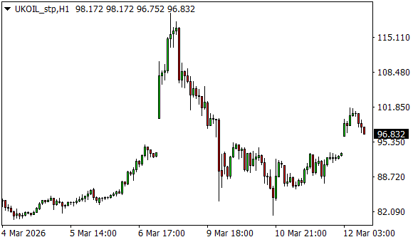 Vývoj ceny ropy Brent (1hodinový graf - H1):