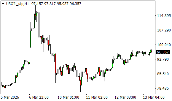 Vývoj ceny ropy WTI (1hodinový graf - H1):