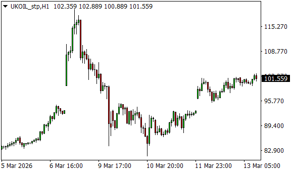 Vývoj ceny ropy Brent (1hodinový graf - H1):