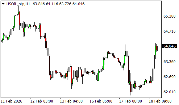 Vývoj ceny ropy WTI (1hodinový graf - H1):