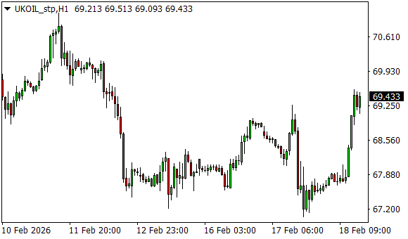 Vývoj ceny ropy Brent (1hodinový graf - H1):