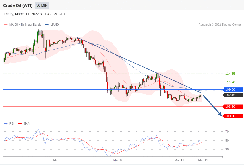 Klíčová slova: Intradenní výhled | Ropa WTI | Pozice | Rezistence | Ropa | Short | Trading | Pivot | WTI | Trading Central | Supporty a rezistence | Výhled | Krátké (short) pozice | Růst | Potenciál | Rostoucí potenciál | 3М |