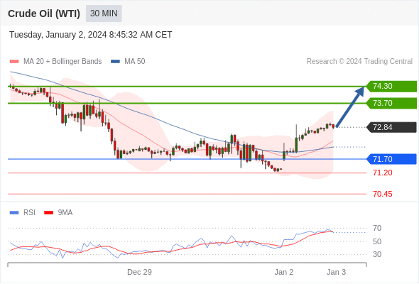 Ropa WTI - Intradenní výhled 2.1.2024