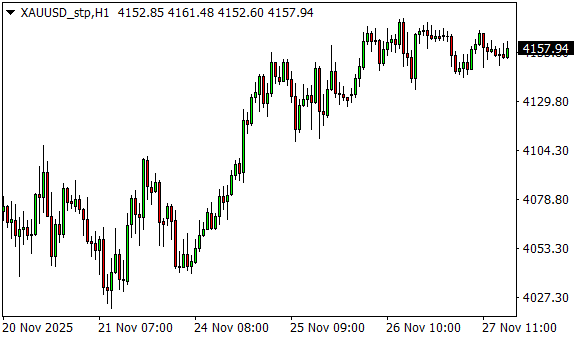 Vývoj ceny zlata (1hodinový graf - H1):