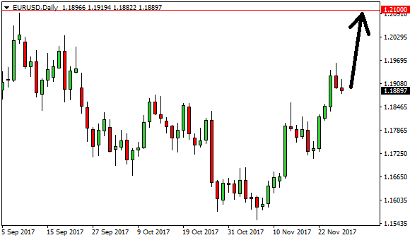 Analytici se domnívají, že měnový pár EUR/USD by do Vánoc mohl posílit směrem k hladině 1,2100 poté, co dokázal opustit menší obchodní pásmo.