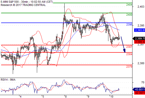 Komentář: Dokud se akciový index S&P 500 bude obchodovat pod rezistencí 2396, tak je pravděpodobný pokles směrem k hladině 2387.