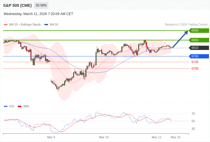 S&P 500 - Intradenní výhled 11.3.2026