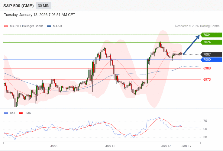 Preferovaný scénář: Dlouhé (long) pozice nad 7000 s cílem na 7024 a dále pak až na 7034.