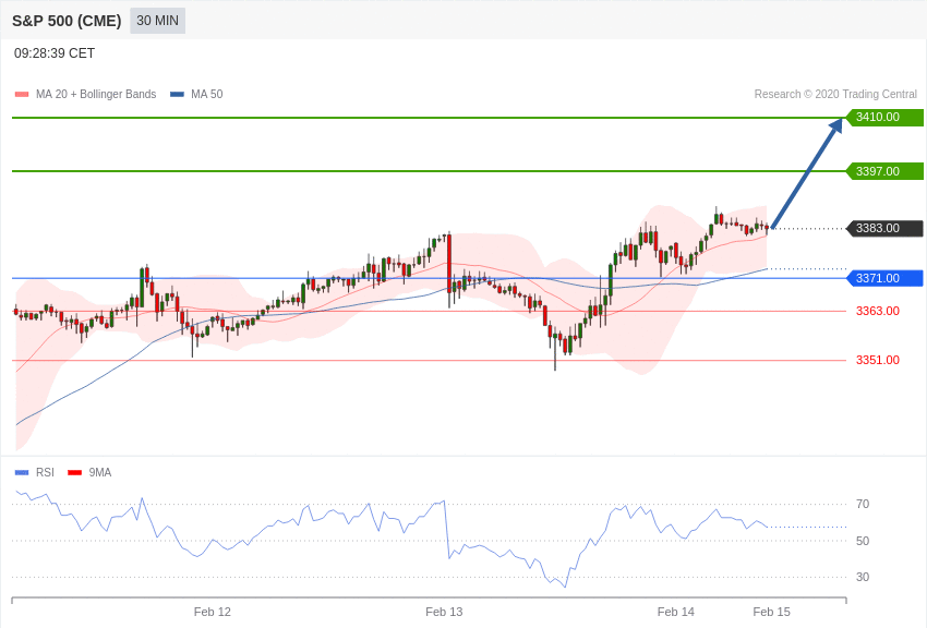 Klíčová slova: Intradenní výhled | Indikátor | Long | Pozice | RSI | Rezistence | S&P 500 | Trading | Pivot | Trading Central | Supporty a rezistence | S&P | Výhled | Pokles | Indikátor RSI |