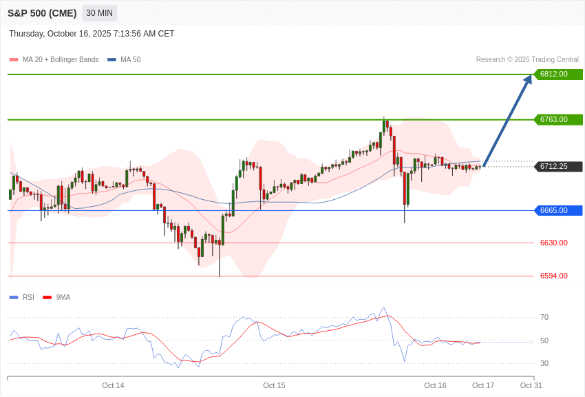Komentář: Nejbližší rezistenci tvoří hladina 6763 a dále pak hladina 6812.