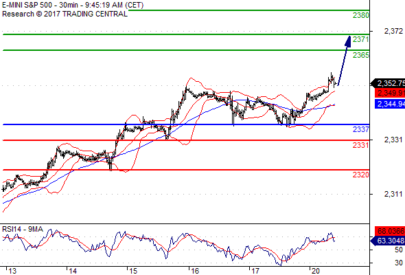 Preferovaný scénář: Dlouhé (long) pozice nad 2337 s cílem na 2365 a dále pak až na 2371.