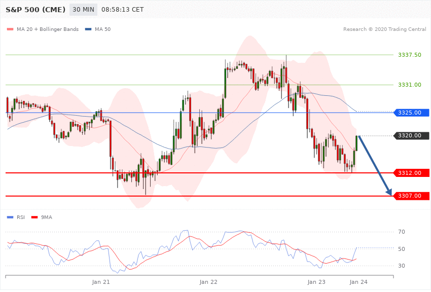 Alternativní scénář: Nad 3325 je pravděpodobný růst na 3331 a dále pak až na 3337,50.