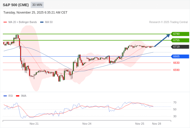 Klíčová slova: Intradenní výhled | Long | Pozice | Rezistence | S&P 500 | Trading | Pivot | Trading Central | Supporty a rezistence | S&P | Výhled | Pokles | Růst | Signál | Dlouhé (long) pozice | Průraz | Pozitivní signál | Supporty |