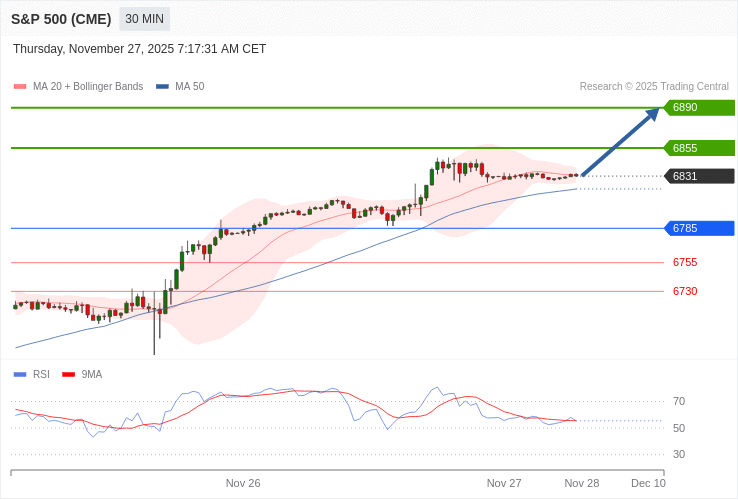 Klíčová slova: Intradenní výhled | Konsolidace | Long | Pozice | Rezistence | S&P 500 | Trading | Pivot | Trading Central | Supporty a rezistence | S&P | Výhled | Pokles | Dlouhé (long) pozice | Supporty |