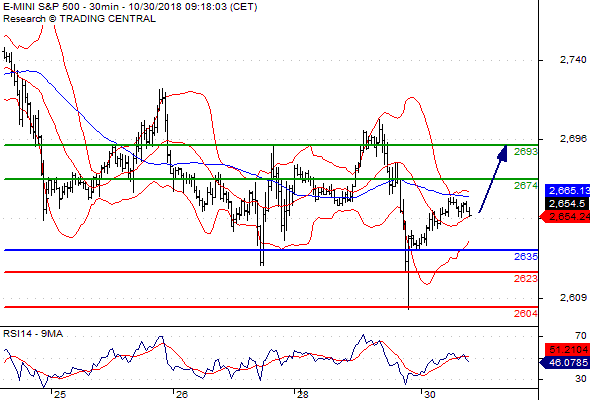 Komentář: Nejbližší rezistenci tvoří hladina 2674 a dále pak hladina 2693.
