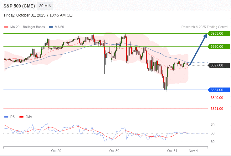 Preferovaný scénář: Dlouhé (long) pozice nad 6854 s cílem na 6930 a dále pak až na 6953.
