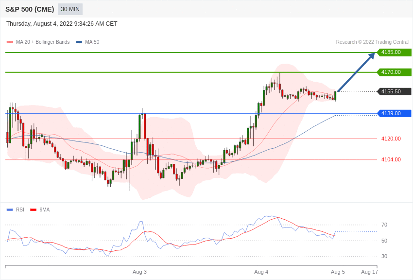 Preferovaný scénář: Dlouhé (long) pozice nad 4139 s cílem na 4170 a dále pak až na 4185.