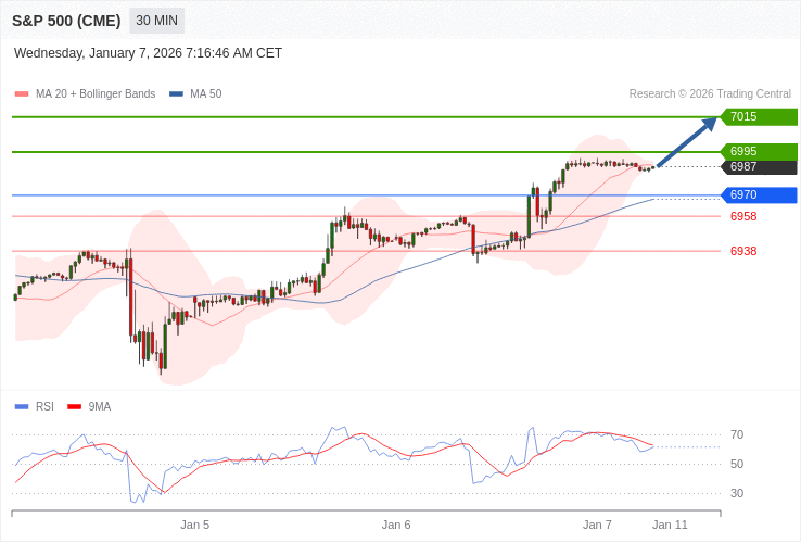 Preferovaný scénář: Dlouhé (long) pozice nad 6970 s cílem na 6995 a dále pak až na 7015.
