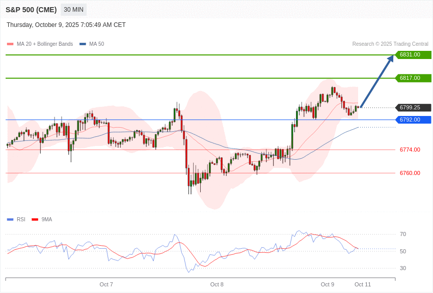 Preferovaný scénář: Dlouhé (long) pozice nad 6792 s cílem na 6817 a dále pak až na 6831.