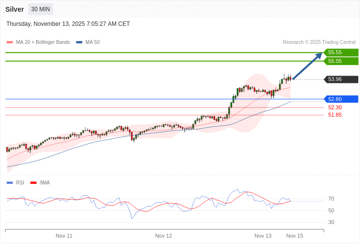 Klíčová slova: Intradenní výhled | Stříbro | Indikátor | Long | Pozice | RSI | Rezistence | Trading | Pivot | Trading Central | Supporty a rezistence | Výhled | Pokles | Indikátor RSI | Dlouhé (long) pozice | Supporty |
