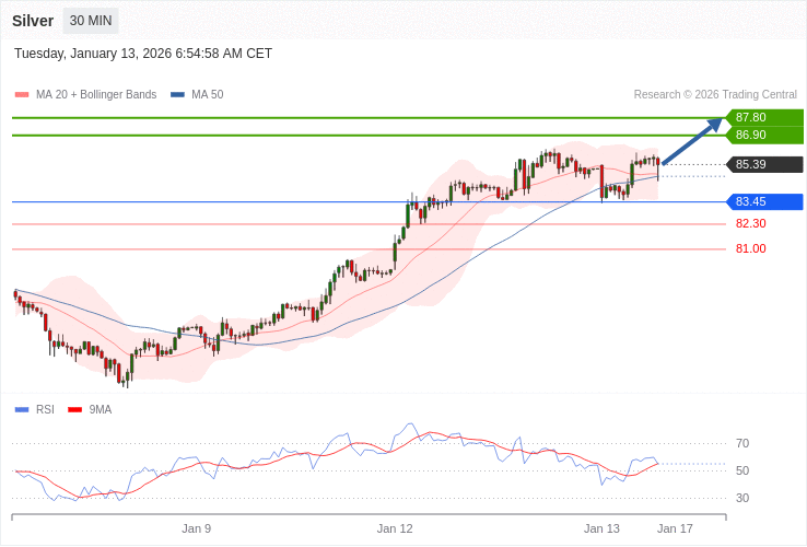Stříbro - Intradenní výhled 13.1.2026