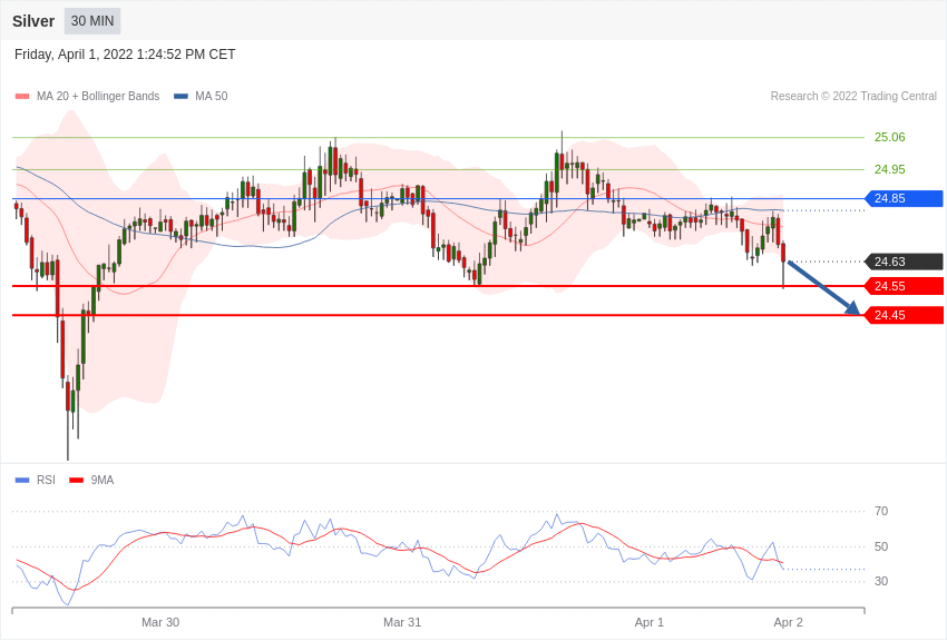 Stříbro - Intradenní výhled 1.4.2022