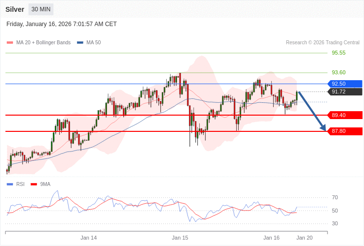 Klíčová slova: Intradenní výhled | Stříbro | Pozice | Rezistence | Short | Trading | Obchodovat | Pivot | Trading Central | Supporty a rezistence | Výhled | Krátké (short) pozice | Medvědi | Růst | Supporty |