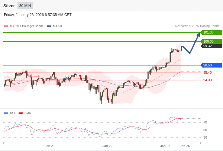 Klíčová slova: Intradenní výhled | Stříbro | Indikátor | Long | Pozice | RSI | Rezistence | Trading | Pivot | Trading Central | Supporty a rezistence | Výhled | Pokles | Indikátor RSI | Dlouhé (long) pozice | Supporty |