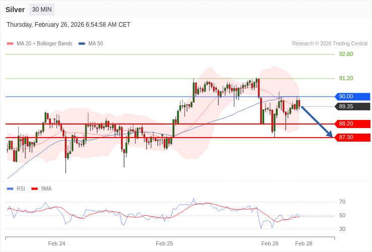 Stříbro - Intradenní výhled 26.2.2026