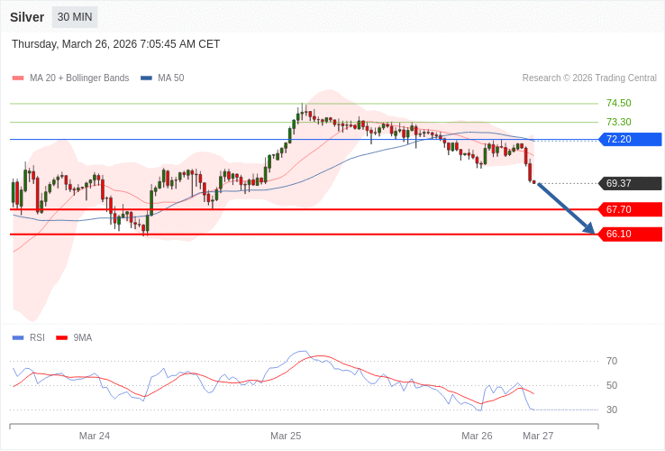 Klíčová slova: Intradenní výhled | Stříbro | Indikátor | Pozice | RSI | Rezistence | Short | Trading | Pivot | Trading Central | Supporty a rezistence | Výhled | Krátké (short) pozice | Indikátor RSI | Růst | 3М | Supporty |