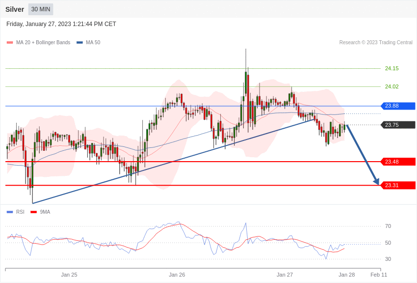 Klíčová slova: Intradenní výhled | Stříbro | Indikátor | Pozice | RSI | Rezistence | Short | Trading | Pivot | Trading Central | Supporty a rezistence | Výhled | Krátké (short) pozice | Indikátor RSI | Růst |