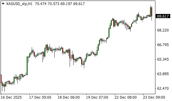 Kolem 15:15 SEČ mělo stříbro na spotovém trhu k dobru 1,7 procenta a prodávalo se za 70,18 USD. Během dne se vyšplhalo až na maximum 70,61 USD. Na spotovém trhu se drahé kovy prodávají a kupují k okamžitému dodání.