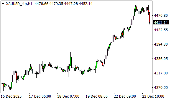 Cena zlata na spotovém trhu ve stejný čas rostla o 0,5 procenta a unce se prodávala za 4463 dolarů. Předtím cena vystoupala až na rekordní hodnotu 4497,55 USD.