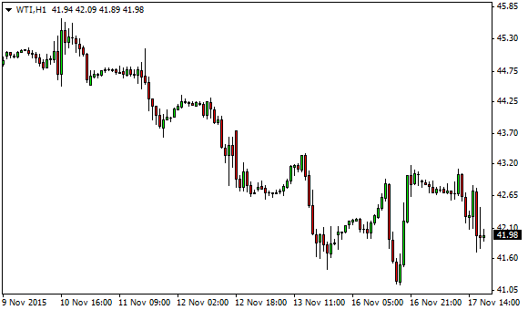 Vývoj ceny ropy WTI (1hodinový graf – H1):
