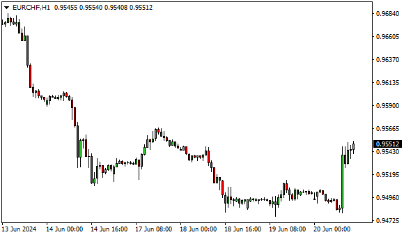 Vývoj měnového páru EUR/CHF (1hodinový graf - H1):