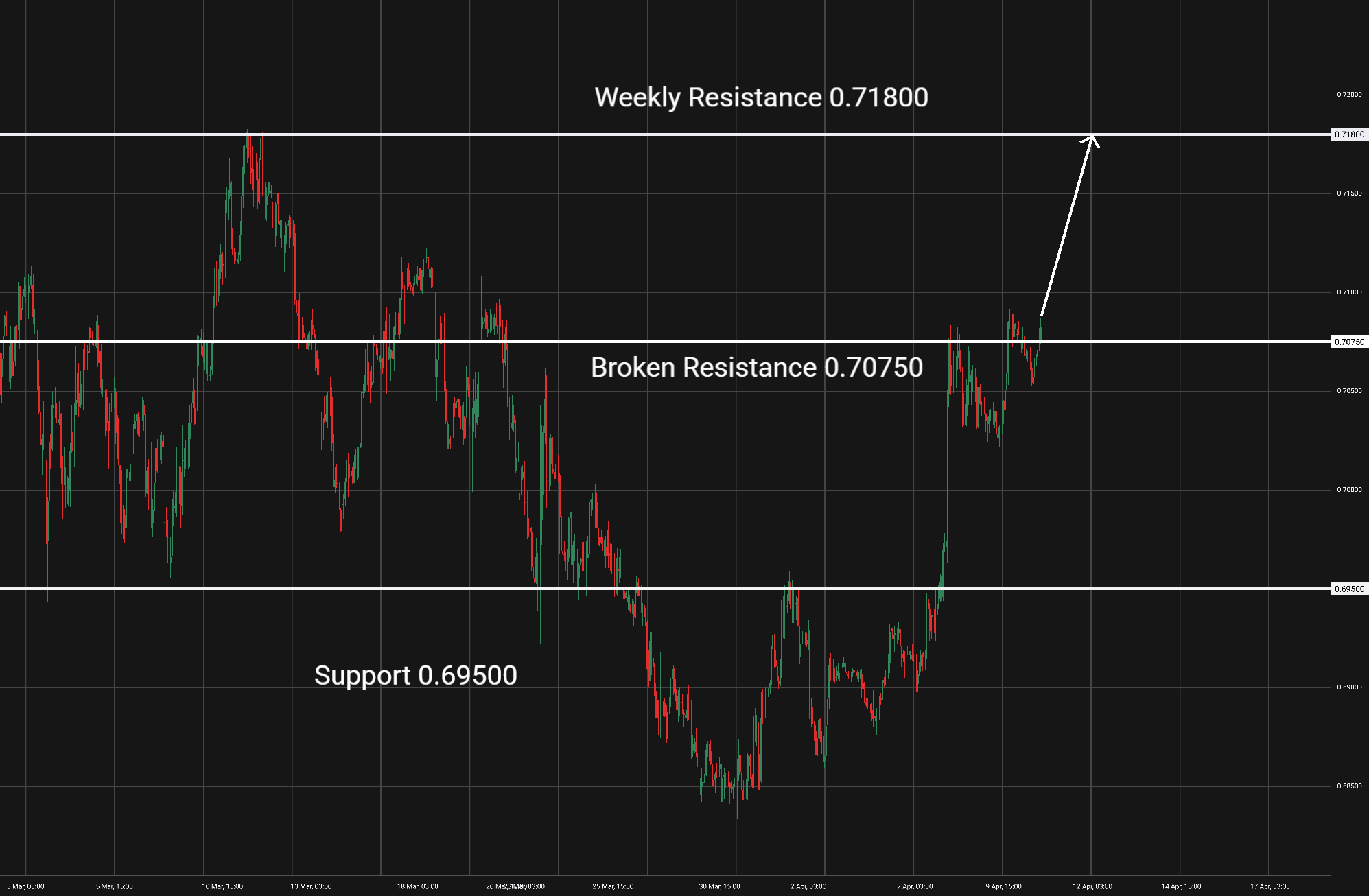 AUD/USD: Tento měnový pár je na 1hodinovém grafu v rostoucím trendu několik hodin. Support je na hladině 0,7075 a 0,6950. Rezistence je na hladině 0,7180. Nyní bychom mohli uvažovat o long pozici se Stop-Lossem pod předchozím minimem. Blížící se fundamentální zprávy by neměly ovlivnit vývoj tohoto měnového páru. Někteří obchodníci mohou v pátek uzavírat své pozice, což by mohlo dostat tento trh pod tlak.